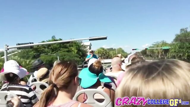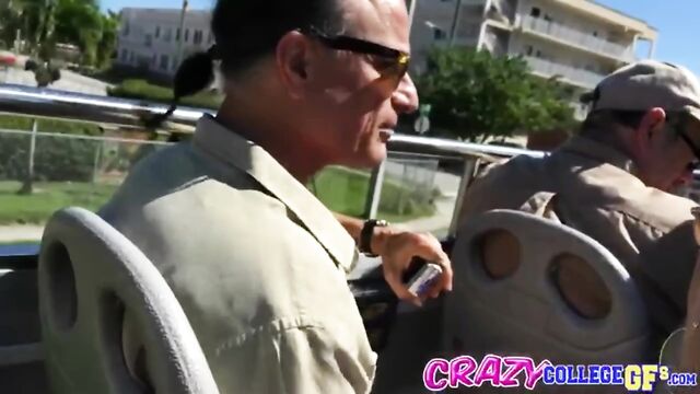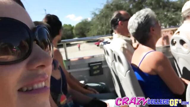 Description:Lola was on a bus tour with her boyfriend when he started getting extremely bored. He decided to make it a little more interesting by slipping his hand under her skirt. Lola was shocked at first, but she quickly relaxed, as her pussy juices started to flow. Maybe it was the exhibitionism, or maybe her BF just new the right spots. Either way, Lola got off as her tight young pussy was fingered. She was eager to return the favor. Lola got on her knees right there in the bus and gave him an A+ blow job. The combination of the blowy with some plump firm titty fucking, and her swallowing his load, made this an unforgettable ride.