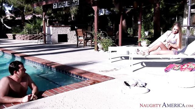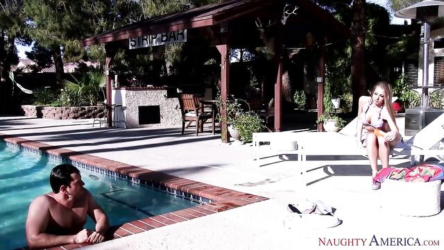 Description:Shawna Leneé is hanging out by the pool with her friend's husband. Little does she know that he is skinny dipping. Shawna is surprised at the size of his cock when he steps out of the pool. She wants that cock bad so she bangs her friend's husband.