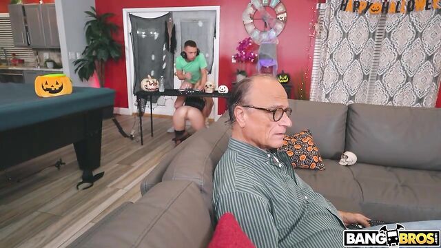 Description:Joey White, a famous social media influencer, is getting ready for a huge Halloween party she's throwing. Her dad is helping her set up, then the DJ, DJ Lovey Dovey arrives and instantly fanboys over Joey. She flaunts her ass to him before crawling under the DJ Table and secretly sucking his dick while her dad is on the couch. Once the dad leaves them alone, Johnny can finally worship that ass. He oils up that booty and then she gives him the blowjob of his dreams before he fucks her hard in multiple positions and paints her face in jizz for a really good Halloween.