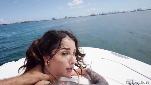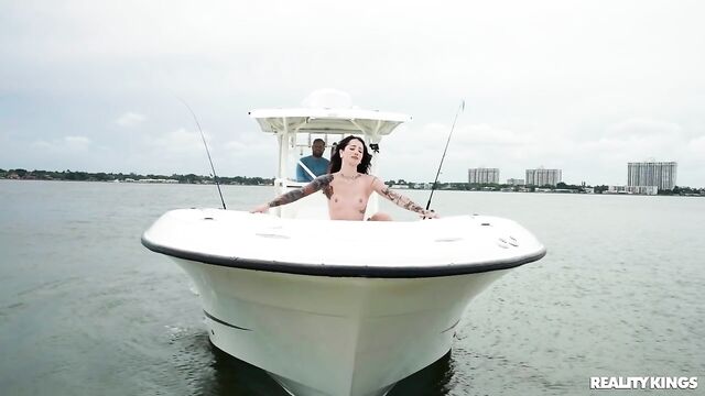 Description:Jmac and his buddies are ready for a nice day of fishing out on the boat when they spot Valerica Steele alone on the dock after her friends ditched her! They invite her aboard to hang out, and she's so enamored of Jmac's big rod that she starts sucking it. They try to be sneaky and fuck in the bathroom, but after his friend catches them, Valerica rides that huge dick on the deck until she squirts over the bow, then takes a big load on her face.