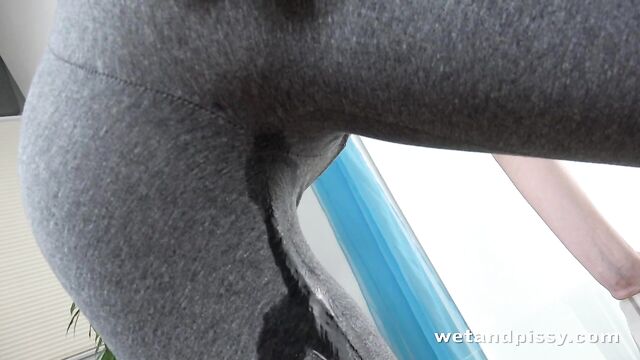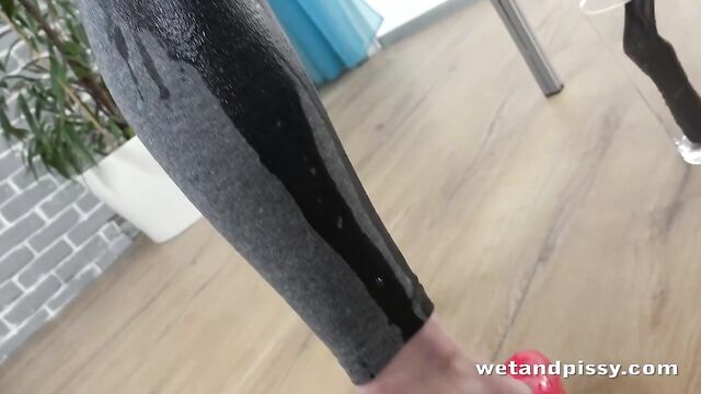Description:Cute European babe Rebeca appears in our latest scene on Wet and Pissy and this slim babe shows off her figure in tight grey leggings and a red cropped top. Rebeca bends over the dining table and suddenly starts peeing her pants as we zoom in on the piss stream, trickling down her legs. She touches herself and sucks her fingers then strips out of her leggings to suck them. Rebeca sits down on the table and masturbates, fingering her wet pussy. Once she is completely naked, this blonde hottie places her cropped top on the table and releases another stream all over her outift. She mops up her pee and squeezes it down over her naked body then bends over again to toy her pussy with a fist dildo. Rebeca places it on the table and fires a powerful pee stream over it before getting hold of a glass vase which she places on the ground, filling it up as much as she can with her golden streams. She pours it into her mouth and spits it down over her small tits then gives herself a nice warm golden shower to finish her pissing porn video!