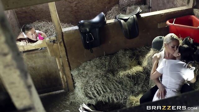 Description:In all the time Ryan's been working in the stables, he's never seen anything quite like what he saw today. After they were done on the track, Ava Dalush and Victoria Summers found a private place to sneak in a hot and heavy lesbian encounter. What they didn't count on is their audience-of-one wanking as he watched them fooling around. When they caught him with his pants down, they just had to give Ryan's cock a ride.