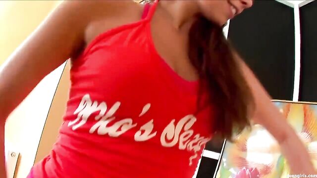 Description:Tanned body, gentle brown hair, hot orange socks and firm little muff make this teen look so wild! Yet for all we know Stephanie goth's it up at night? She lies on a white couch for contrast, and spreads her long legs at sexy angles - make a wish! Stephanie listens like a good girl and exposes her fuckhole lips for us to inspect. Nice view from here! Fingers with red nail polish poke into the surface of her pink snatch. Finally she drapes one leg over the couch arm and displays her perfectly shaved hole for us - twat closeup!