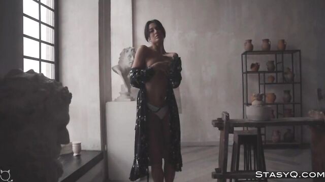 Description:You will fall in love with this all-natural stunner. Her name is MariannaQ, and Video Release 528 presents all of her tempting charms. This StasyQ model captivates with her curly hair, lovely curves, and gorgeous face, and Said Energizer is there to capture it all for eternity. Before her naked body sets the show on fire, the light-haired goddess teases in purple lingerie and a white jacket that perfectly hugs her feminine charms. MariannaQ tantalizes with her firm behind, long legs, and pouty lips that reveal the endless amount of passion building up between her legs. Pretty soon, the blue-eyed hottie undresses, sits by a big window, and watches as the subtle light caresses her erect nipples. She doesn't plan on stopping anytime soon. While the soft fabric of her lace panties arouses her even more, the diva bites her lips and continues to tease. The mind-blowing show continues on a luxurious sofa.