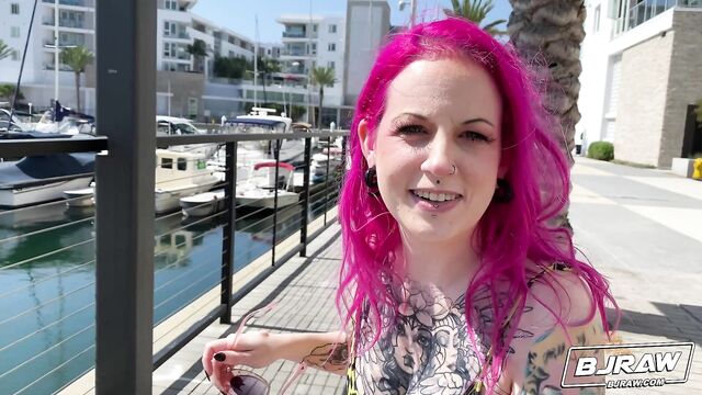 Description:I met the most interesting girl today. Her hair and her tattoos are what caught my eye, but she loved showing me her other body modifications. I had a feeling she would be down for showing me more, so I invited her over. I was right! She showed me what a good cocksucker she is and I showed her what her face looks like plastered in cum!