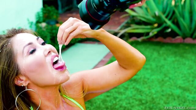 Description:A busty, experienced Asian MILF with enormous knockers, tanned blonde Kianna Dior oils the cleavage showing from her small bikini top. The glamorous slut pours milk on her big tits and then kneels before director Jonni Darkko for a POV-style blowjob shot outdoors. Kianna lewdly sucks his balls while wanking Jonni's stiff dick; she gags on his hard prick, drooling on her chest. After her nasty display of cocksucking skills, the director spurts creamy cum all over Kianna's face.