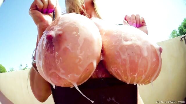 Description:Asian MILF goddess Kianna Dior exposes her gigantic jugs and pours milk all over them, followed by a gooey mess of thick lubricant. The glamorous bimbo rubs a lollipop between her massive tits and lets director Jonni Darkko suck. He thrusts his hard dick down her throat. Kianna slurps on his meat and drools into her cleavage. Jonni bones the busty slut's juicy pussy while shooting POV-style footage. After more blowjobbing and titty fucking, he splatters Kianna's face with hot sperm.