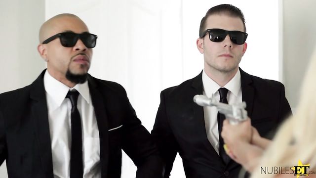 Description:The MiB has received reports of unauthorized alien activity and has dispatched agents to investigate. Three agents show on the scene, male agents J and S and female agent M. The male agents tell the female to strip to prove she's human. Agent M agrees, but she makes a production of it that's designed to make the men as uncomfortable as possible. Her distraction works, but only after she's bare naked. Now that she has the upper hand, the female agent tells the men to strip.The men protest, but eventually agree to take off their pants. Agent M drops to her knees and takes one cock in each hand so she can deep throat them down one at a time to verify that they're real. Now that Agent M has made thing sexy, Agents J and S aren't about to stop there. Agent J picks Agent M up and tosses her onto the bed so Agent S can slide on home in her wet cooch while she strokes Agent J off and continues sucking. Then Agent M gets on her hands and knees so Agent J can bang her doggy style while Agent S muffles her cries of pleasure with his dick.Turning around, Agent M gets it doggy style from Agent S while she gobbles down Agent J's hardon. Then she turns onto her back so Agent J can enjoy one last ride in her tight twat as Agent S strokes himself off behind her head. The two male agents are almost ready to cum, so they get Agent M on her knees and take turns jacking off into her waiting mouth so she can swallow both loads down. As soon as she's done enjoying herself, Agent M flashes the boys so they won't remember anything.