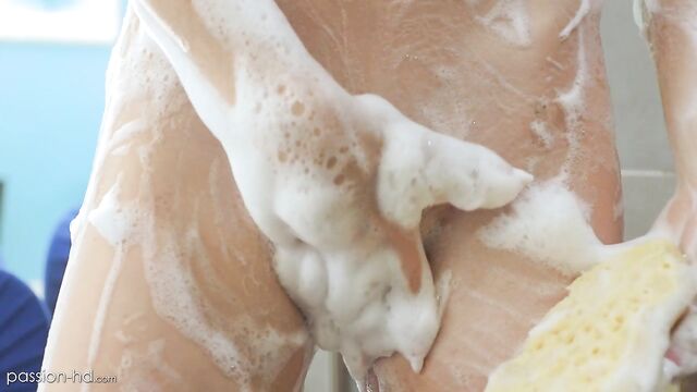 Kyle joins Tori in the shower for a wet, soapy fuck.