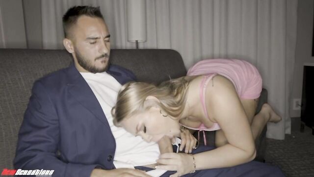 Description:Considerate hotel bystander Milan makes a great rewarding quick judgement, reaching out to help sexy curvy blonde Harley King who was having trouble with her heavy luggage inside her car. Hesitant at first, but Harley figures why not and lets Milan give her some helping hands with the luggage up to her room. Grateful, Harley offers him some water and to hang out a bit and that is when Milan notices she is married and inquires the whereabouts of her husband. Harley lets him know she is on a work trip alone, as her legs begin to spread open in her cute pink dress and quickly hopping on Milan and whipping out his big cock, ready for her to suck and gag on. Milan then bent her over, spreading her sweet big ass cheeks and tasted her sweet pink juices before slowly slipping his throbbing dick inside her hot, wet married cheating pussy for a great fuck and explosive load sprayed on her pretty little toes! - INTERACTIVE TOY READY!