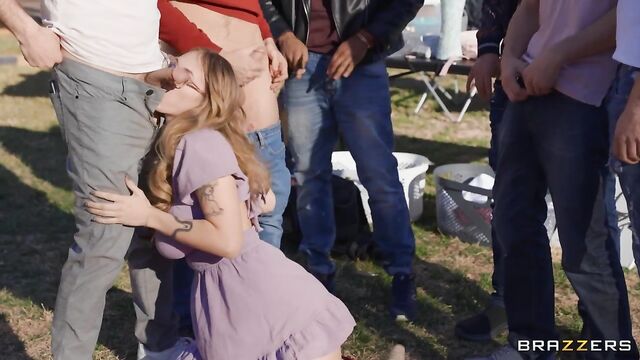 Description:At first glance, Angel Youngs may seem like a fairly innocent girl next door. Glowing smile, laid back attitude… But you know what they say; never judge a book by its cover. Underneath those conservative clothes is a cock hungry nymphomaniac that has been locked away for an entire year. Over three hundred days of being unable to grope her huge, natural tits. Play with her tight, wet pussy lips. Have tendrils of drool slide off her tongue onto the pulsing head of a throbbing, eager cock. Well, Angel isn't going to wait any more. She knows what day it is. She's planned this for months. When the siren goes off, Angel will have surrounded herself with men. And she can't wait to devour them all.