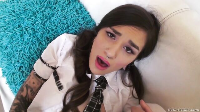 Description:Luna Lovely, an audacious, radically tattooed schoolgirl, loves intense anal sex. She films herself teasing and masturbating on her phone, until stepbrother Mick Blue walks in and threatens to tell her parents. The young temptress quiets her blackmailing bro with a show of her body and a slobbery blow job. She buzzes her bald gash with a vibrator and the hung stud probes her asshole with toys. Luna fondles her twat through a hard butt fuck that leaves her bunghole gaping. And she gives ass-to-mouth head.