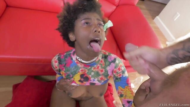 Description:Young ebony beauty Daizy Cooper has perky, natural tits, dark skin and a cute Afro. She meets Bryan Gozzling on a sketchy pickup site and heads to his place for a male-dominant fuck. Bryan finger-bangs her to an intense, squirting orgasm. Daizy kneels for a gagging, throat-pounding blowjob. The submissive slut giggles as Bryan smears her face in puddles of girl cum. Next, she enjoys a messy, graphic cunt plowing. The rabid romp climaxes when Bryan slathers the pretty girl's face in wads of sperm.