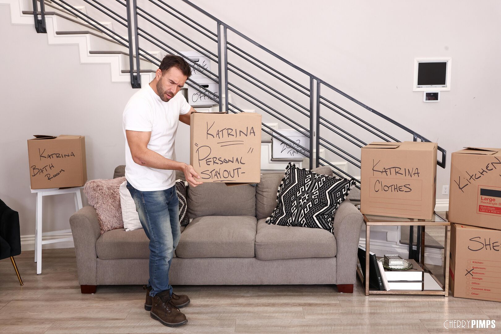 Description:Katrina Colt and her new husband Will Pounder are finally moving in together! But while she was off organizing something, he thought he would be helpful and help her move some boxes. He was in for a shock when the box started to fight back and vibrate loudly! He opened up to find a large cache of toys that were all targeting her nether regions. They have never done anal before, so he was shocked that she had all the anal plugs and butt toys in her secret stash. But she confessed, she was only waiting to see some more commitment in their relationship. Now that they were married, it was time to explore that tight asshole of hers!