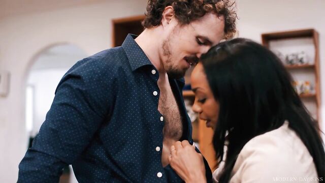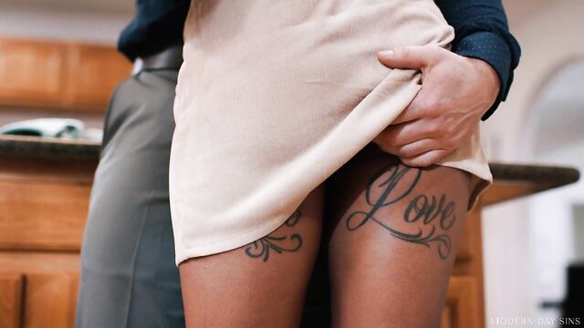 Description:Robby Apples arrives for dinner at his sibling Codey Steele's house, bringing a warm casserole as his humble contribution. Since Codey's busy watching the game on television, Codey's wife Cali Caliente invites Robby to come help her in the kitchen. But little does Codey know that Robby and Cali will be getting up to more than just cooking...Once they're in the kitchen, it's revealed that Robby and Cali have secretly been having an affair behind Codey's back. It's been far too long since the last time they've had the opportunity to fool around, and Cali is absolutely famished for Robby's cock. She pulls down his pants and starts blowing him right then and there- with Codey just in the next room.As much fun as Cali is having in the kitchen with Robby... she needs to make sure that Codey isn't feeling left out. Cali decides to jump from room to room, fucking one man in multiple positions before excusing herself briefly to go put the other man inside of her. She does this masterfully, with Codey never catching on to his wife's games. Cali does such a good job that she is rewarded by not one, but two dripping vaginal creampies. Dinner is served!