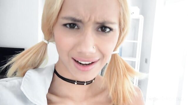Description:Petite blonde Veronica Leal adores dressing up to underline the beauty of her long legs and thin waist, but she adores taking off her clothes more than anything else. She believes her body is hot and sexy and that the world should admire her gorgeous looks. So, Veronica Leal takes off her pants and panties slowly, plays with her yummy tits and nipples, and, finally, opens her pussy lips to tease her clit and get satisfaction.