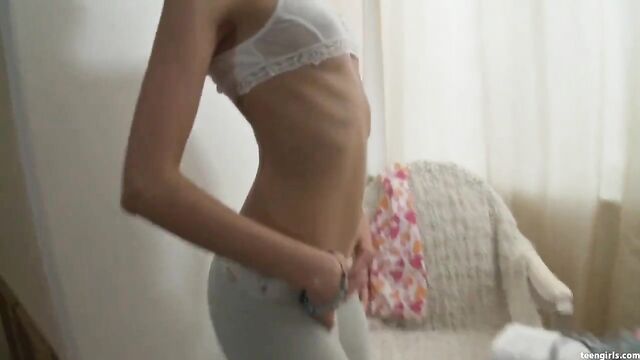 Description:You're not going to believe how playful this teen Jaclyn is, from her curvy body cased in tight spandex and that cherubic, youthful face that's just to die for! Jaclyn takes a break from her studies to show us what she's working with, bending over showing her perfect teen booty. Her firms grip her wonderful body so hard, you can actually see her sexy pantie outline. Then, off goes her frilly top! Being a shy starlet, she covers up her nano juggs for a moment, then lets us see those gorgeous apple blossom tits. Jaclyn masturbates with her thongs still on, jamming her hand down and playing with her clit.