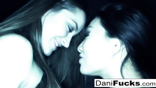 Lascivious Asa Akira and Dani Daniels's natural tits sex
