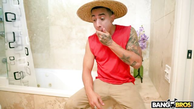 Description:Valerie Kay loves to chill by her pool. She also loves to tease her employees. She asked her gardener Bruno to help her by putting oil on her back. She kept asking him to go lower and lower till eventually he was massaging her ass. Bruno couldn’t take it anymore so he took off running to the bathroom. There, he washed his face and tried to calm his urges. He was unable to, so he started jerking off in the bathroom. Valerie went to check on him and discovered him masturbating. The thing that brought the biggest shock to her was the size of Bruno’s cock. Valerie dragged him back to the pool so he could pound her pussy with his giant gardener cock. He lammed her in several different positions until busting a giant load all over her face.