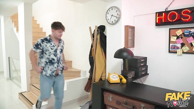 Description:After checking into the Fake Hostel, beefy stud Michael Fly and his gorgeous Ukrainian girlfriend (Mia Trejsi) are shown to their room by pervy host Steve Q, who spies on Mia gagging on Michael’s huge dick! Michael returns the favour by eating out the raven-haired stunner’s tight pussy and fingering it before sliding his rock-hard cock deep inside. Wanting Mia for himself, Steve lures Michael out of the hostel room and takes his place, fucking the pierced babe's juicy lips in doggy position! With her beautiful tits on display, Mia alternates between fucking the two well-hung dudes, bouncing on Steve’s thick cock cowgirl-style until her hunky boyfriend returns, and then quickly hopping off Steve and riding Michael instead! After getting banged in missionary position by Steve, it’s Michael’s turn to get his cock serviced by the gorgeous nymph until he cums directly into her mouth!