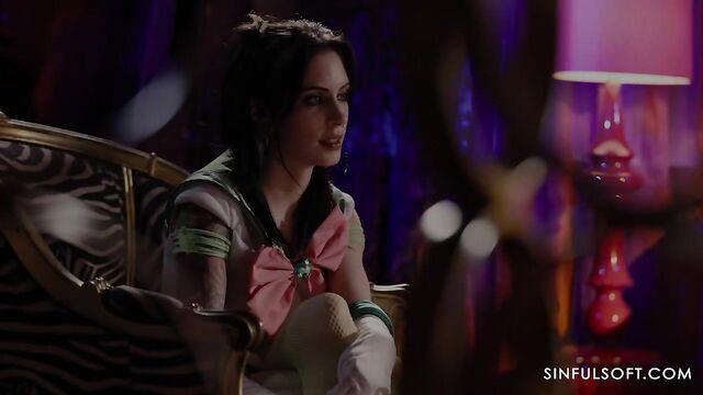 Description:A new adventure for Anna! She awaits her turn to get into one of the rooms at the club that she is in. But before she can enter, she finds a note: "You are not only dressed as a waitress, you ARE the waitress". She opens the door...