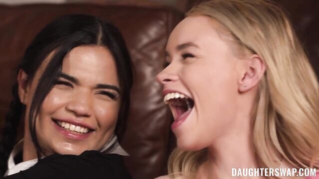Description:Wednesday (Summer Col) and Enid (Khloe Kingsley) have become very close after sharing a room for the semester. Their bond is so strong that you could call them “Scissor Sisters”. Despite being total opposites and disagreeing on everything, they have become quite dependent on each other. Lately, Wednesday has been acting more and more distant, so Enid confronts her about it. Wednesday tells her friend that she is getting bored of rubbing pussies and is seriously needing some cock. The lack of manly cock in their school leads the girls to use dark magic to summon some real men to please their eager pussies. Yet something goes wrong with their spell and instead of summoning some young hot boy toys, they accidentally summon their stepdads. Being the good stepfathers that they are, the two men are willing to do what it takes to make their little girls happy.