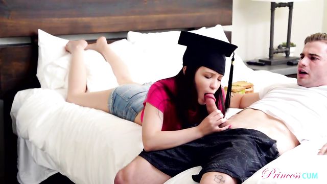 Description:Rosie Riches has graduated high school and she couldn't be more proud! She refuses to take off her graduation cap, even wearing it as she goes to make her stepbrother, Nathan Bronson, a sandwich. Rosie brings the sandwich in to Nathan and then lets him know that as his older sister she needs to look out for him for all his needs. She insists that the last time they fooled around she noticed something on Nathan's dick and since his dad had skin cancer, she's worried. Nathan finally agrees and whips it out for Rosie.As Rosie is peering at Nathan's fuck stick, she realizes that he's getting hard. With a flash of her small boobs, she easily convinces him to let her help him with his needs. Her mouth is hot with the slightest edge thanks to her braces as she sucks Nathan off. Stroking the root as she blows the tip, Rosie gets Nathan way too hot and bothered to want to stop now. Bending over on her hands and knees, she waggles her pert ass in front of him and then hops on top or a stiffie ride on his hardon.Giving in to his stepsister's needs is as hot as ever for Nathan, who can't keep his hands off Rosie's bottom as she rides him. Turning around on her hands and knees, Rosie invites Nathan to give it to her once again. He delivers the doggy style pussy pounding she's craving. When Rosie rolls over, he goes to town on her greedy snatch. When Nathan is ready to cum, he tries to pull out and Rosie wraps her legs around him to keep him buried inside. She gets the creampie she's been jonesing for, then promises to take care of Nathan and the baby if she gets pregnant.