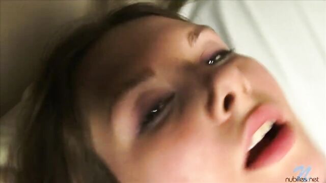 Teen Makayla slowly strips and masturbates and then sits on the cock of a lucky stud.