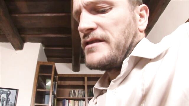 Description:Morgan Moon and Lolita are naughty blonde teens that are caught smoking inside a bathroom by one of their professors. You'll be watching these ladies lure the guy into letting it pass in exchange of having a threesome.