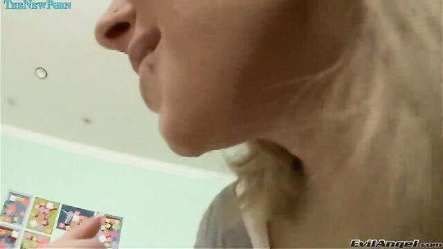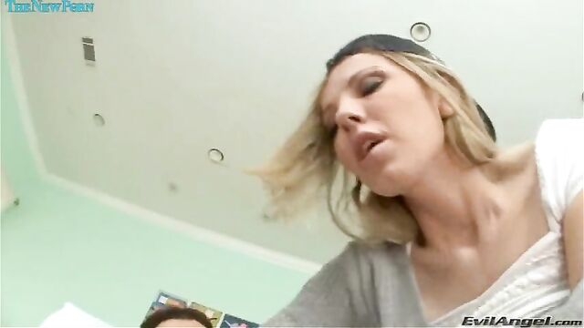 Blowjob scene with Aleksa Nicole, Allie James and Mike Adriano from Grab