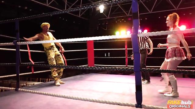 Description:Teen Machine (Ella Hughes) is back for another match scheduled with the mysterious Reaper, but the scheming Headmistress convinces Dick Bush to change the fight! The Machine is shocked to learn she will now have to face Bulldozer, who promptly defeats her in the first fall. Teen Machine mounts a cumback and uses her big ass and some facesitting to defeat her larger foe. Winning turns the Teen Machine on, so she fucks Bulldozer mid-ring, then celebrates her victory.