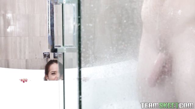 Description:The extremely hot and petite Esperanza Del Horno was excited to wake up to a big empty house all to herself. Since no one was home, she was going to use the huge bath in the master bathroom to relax and masturbate in. Just as her fingers grazed her hot narrow pussyhole, her brother Justin came in. She quickly hid in the tub. She watched as Justin went in the shower and began to jerk his cock. Great minds think alike! Esperanza eventually got his attention and reached right for his large wang. Her small hands could barely grasp it, but that didn’t stop her from placing it inside her tight throat. Once her oral fixation was quelled she got doggy fucked with a vengeance in the shower and received a pearly white facial. Petite girls really do have more fun!
