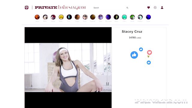 Description:The phenomenal Stacy Cruz is another of our Social Media Sexy Influencers and she’s here to show you how to cool off and stretch down after a workout with her man Max Deeds, however during the presentation Stacy can’t help resist the sight of cock and she just has to get a taste. Watch as this super sexy girl sucks off her man before hopping on for a ride and taking a real blasting, so much for a cooldown… things soon turn back into a real gym workout that has those perfect tits bouncing and a load of cum over them to finish.