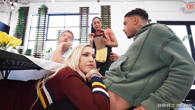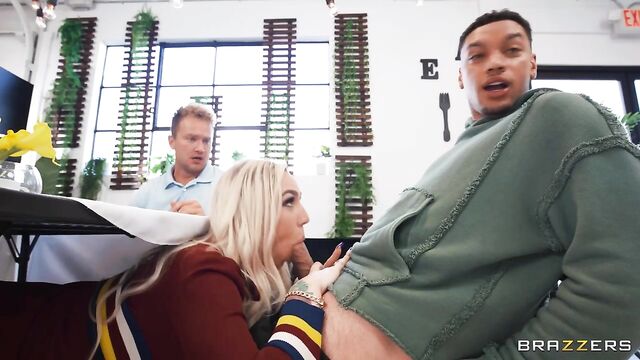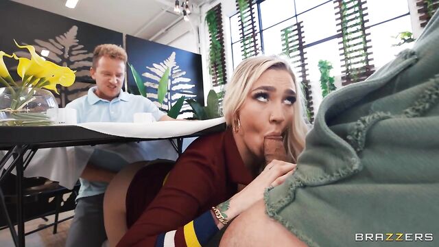 Description:Kendra Sunderland, Air Thugger, and Van Wylde socialize at a diner, coaxing each other into pervy shenanigans. What begins with Kendra snapping a raunchy under-the-table pussy pic quickly ramps into sluttier “under the table" activities (blowjobs, spit roasting — oh my!) until a suspicious waitress almost catches Kendra with Thugger's cock in her mouth (and Van Wylde's in her pussy). Fortunately, the overworked/undersexed waitress needs a change-up in her day and closes the restaurant, allowing the threesome to continue their group session. Thugger and Van Wylde switch off, drilling Kendra's mouth and pussy, back and forth before each smacking their fat cocks against Kendra's tits (one of each), smattering them in cum. The dismayed waitress returns to find gobs of jizz and Kendra's glistening nips on the table — all in a day's work! The pervy trio pranks on.