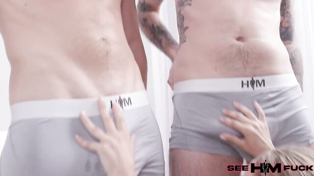 Description:Everyone here at See HIM Fuck is pleased as punch to welcome back both Nade Nasty and Oliver Flynn for this week's remarkable double vag update featuring the lovely Summer Vixen. Director Johnny Robins boots things off with the interview portion of the program, followed by our HIMs standing up and undressing so that Summer can sample their gifts. Summer then sniffs and licks each of their hirsute armpits before slathering them with lube and caressing their engorged pricks. She gets on her knees for the court-mandated Row Row Row Your Boat double blowjob that is required in all BBG/MMF scenes (Google it!) before our HIMs take a seat so that she can smell, lick, and suck on their socked and bare feet. Next up is the ass-eating portion of the program, where our HIMs toss their ankles behind their ears so Summer can gnaw away at their balloon knots. A double rusty trombone follows this, then each HIM being rimmed and tongued from overhead in a reverse piledriver, and finally, with Oliver copping a squat on Summer's face while Nade munches away at her hairy twat. From there, Summer goes onto the rotisserie, and it's just a mishmash of sweaty flesh with more rimming, sloppy cock-sucking, and rapid-fire deep-dicking. Each of our HIMs takes a turn piledriver fucking Summer before we get to what I presume some of you have been waiting for: THE DOUBLE VAG! First, Summer rides Nade cowgirl as Oliver penetrates her from behind, then Summer rides Oliver reverse cowgirl as Nade glides it in from the front. When the time is right, both HIMs pull out and proceed to make Summer's face look like she was hit by a mayonnaise truck. We followed all three into the shower after, only to find more of that court-mandated Row Row Row Your Boat double blowjob stuff going on...