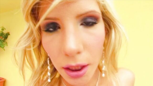 This pretty little blonde releases her perfect rack from her bra and jiggles her tits up and down. She covers herself in cream and cums.