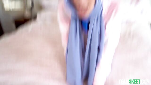 Description:What’s up, TeamSkeet fans? If you were in the mood for a nasty jerk-off session, we’ve got you covered! We have a gorgeous babe behind a mesmerizing hijab doing ungodly stuff to get your blood pumping to your cock. Originally published on August 22, 2021, in Hijab Hookup, this scene features Izzy Lush playing the lonely Muslim girl who has to stay at home during the Muharram. To make things worse, there’s a cool water park trip she’s gonna miss because of the occasion and she can do nothing about it. In a horny turn of events, her friend Donnie shows up and offers to help her escape from the situation. But first, Izzy has to loosen up a little and learn some cool Western ways, like trying her first dick. Nervous, the girl touches her friend’s cock with curiosity, soon bending over to taste it. The rush she feels is instantaneous, accepting Donnie’s next naughty proposals. In just one session, Izzy learns the power of her precious pussy and her petite and perky boobs. And the risk of getting caught makes the situation even hornier, pushing Izzy to try being fucked for the first time! With each push of Donnie’s cock inside her inexperienced pussy, Izzy feels liberated through one nasty fuck session.