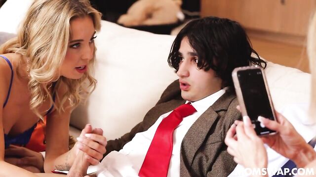 Description:Valentine’s Day couldn’t be looking worse for Gigi and her stepson Elias. The vivacious blonde got stood up by her husband despite her getting hot lingerie for the occasion. Elias and his friend Nick got rejected by their girlfriends, who opted to fuck with college guys. And Millie, Nick’s stepmom, had the same bad luck, with her husband leaving her alone on the special day. Yet, this lustful foursome won’t accept no as an answer, and instead of fucking who they were supposed to, they are having a nasty swap session together! Gigi will try youthful Nick’s luscious dick while Millie gets to have her way with her best friend’s stepson, Elias. As the two milfs get sweet revenge while riding young cock, the boys get a lesson on pussy-drilling from two experienced ladies who know how to make them cum nice and hard.