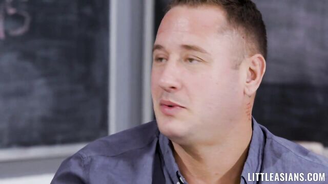 Description:Amber may or may not have a crush on her teacher, Mr. Mountain. He would be lying if he said he didn’t notice how cute she was. And whenever she talks to him, she lingers around, trying to get as much time in with him as possible. But Amber is Danny’s student, and it wouldn’t be appropriate to make a move on her. Still, the angel and the devil on Danny’s shoulders are at war. The angel is virtious, but the devil is fun and enticing. Ultimately, Danny decides he isn’t going to risk messing around with Amber, but that doesn’t mean he can’t let his imagination wander and fuck around with his devilish desires. Devil Amber sucks Dann’y cock and struggles to get it all in her mouth. He’s a big man, after all, and Amber is just an innocent petite Asian babe. Danny can tell Amber still wants to show him how bad she can be. She slobers all over his cock and balls before giving up her pussy. The naughty devil chick rides Danny’s cock, letting him get deep inside of her. They shift around and fuck in all sorts of positions before Danny cums hard on her face.