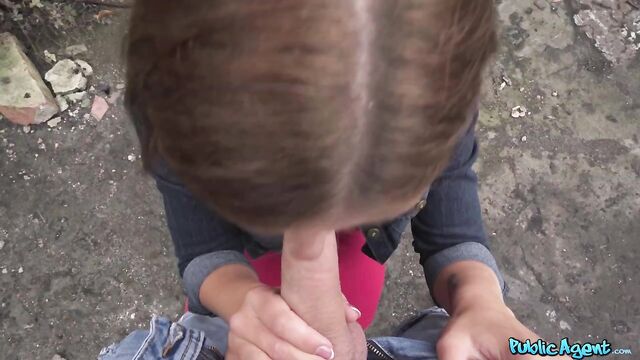 Description:Today I met this hot brunette named Tiffany Blue, and after chatting with her, I discovered that she was an aspiring actress. I offered the pretty Czech some money to show me her curvy ass, and then she pulled aside her thong and flashed her pussy! I was feeling horny, so I gave Tiffany a few more euros in exchange for a blowjob, which she agreed to. After finding a secluded place, the big-boobed nymph got on her knees and sucked me off, and I could tell that the feel of my rock-hard dick in her mouth was turning her on. Tiffany invited me to fuck her from behind in standing doggystyle, and then she hopped on top and rode me cowgirl and reverse! While she was bouncing on my cock, I spanked her sexy booty, and then the cum-hungry babe wanked me off until I spilled a thick load inside her mouth!