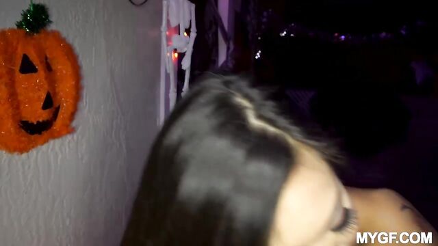 Description:Vina Sky is out trick or treating in her naughty cop uniform! She is a wild daredevil and she flashes her hot body for the cars passing by! She goes into the haunted house and gets extra horny and begs for her tight pussy to be fucked! She gets a nice treat of a big dick pounding out her tight hole as she shows just how controlling she can be as a sexy Mrs. Officer!