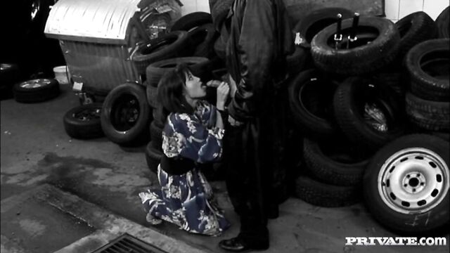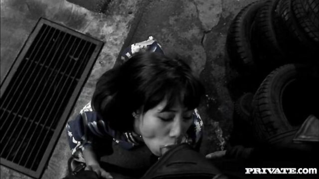 Description:Horny Asian Betty Wong helps a soldier outside with some items where they embrace and get hardcore with her kneeling down and sucking on his dick. She spreads her legs for him and he fucks that hairy pussy with her moaning beneath him. Anal sex comes next and then the facial cumshot ending.