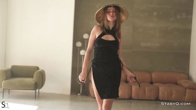 Description:A blue-eyed angel, JoyceQ, appears in front of Said Energizer's camera barefoot and pouty. She is ready to conquer this erotica world and become your next obsession. She is sweet, looking like a forest goddess with one of those point wooden hats. Ready to blow all our minds, this StasyQ model starts squeezing her boobs over the black fabric of her dress. While doing so, her sexy gaze is fixed on the camera, and her juicy lips are slightly parted. Video Release 589 then moves on to show the stunner's booty, which looks even more seductive when embellished with black panties. JoyceQ is on a sofa; she is curling her toes while her behind shakes for the camera. It is not long before JoyceQ takes the top of her dress off and shows a pair of firm and natural boobs, while a tattoo on her belly adds a touch of edgy to this erotic spectacle.