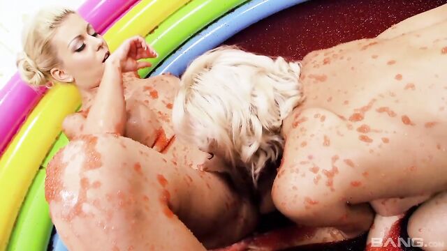 Description:Louise Davis and Christine Love didn't know what to expect when they signed up to wrestle. Next thing these two blondes knew is that they were in a room with a pool full of jelly that they were about to have hot lesbian sex in. Nothing makes a clit taste better than a little jam!