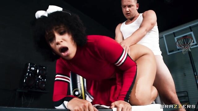 Description:As daughter of the college’s richest donors, and the last of her sisters to rule the squad, cheerleader team captain Diamond Banks is under a lot of pressure to maintain her title - and she refuses to let newest team member Paige get in her way! Upon discovering that her new rival has already traded off her pink and purple bracelets, Diamond pursues Paige’s crush – and her old flame – Van Wylde, in hopes of extinguishing Paige’s fiery determination. Diamond finds Van training in the gym, where she seduces him and wraps her lips around his cock before he puts it in her pussy!