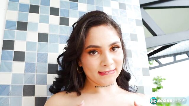 Description:The word tattooed on her neck is "Inmarcesible" which means "unfading." Kim got that tat in 2021. By her left hip, "Fuck me, Love me." That's a new tat since we last photographed the Voluptuous beauty in 2022. Have her big, beautifully shaped tits gotten bigger? They look like she's added an inch or two. Her saucer-plate areolas also seem bigger but this could be the hallucinations of our breast-obsessed minds. Her bikini top barely covers her areolas. They still peek out at the sides.