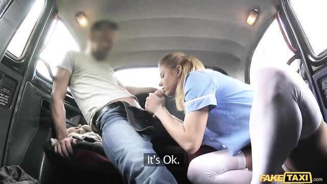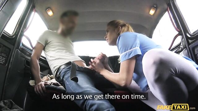 Description:Hot blonde nurse Crissy hopped in my cab today, needing to get to the hospital, stat! She had replacement silicone implants for a surgery and the doctors were waiting on the sexy healer to deliver them. She was wearing a little blue uniform and thigh-high white stockings with high heels, just like she stepped out of a wet dream. When we hit a traffic jam that wasn't moving, she asked if I had a special cab driver route we could take to the hospital. Sure, I said--if we can take a quick break for a fuck! Crissy lost all interest in getting to the hospital once I joined her in the backseat. I fucked her in her hospital-white bra and panties, and she squealed through every wonderful orgasm. And in keeping with good beside manner, once I blew my load on her tongue, nurse Crissy lapped up every drop!