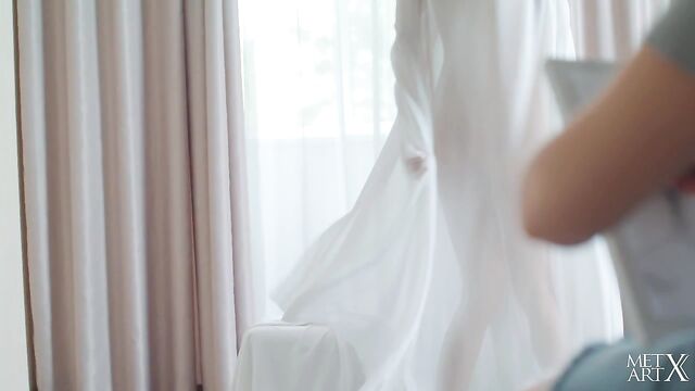 Description:Cute brunette Cristin is posing for an unseen artist, taking off her t-shirt, jeans and panties. At first she looks a little shy, wrapping sheer fabric around her body and standing like a statue. She soon warms to her role as artist’s muse, smiling seductively and stretching out her long legs. She lets the wrap fall to expose her beautiful breasts, fingers tracing around her nipples to make them stiffen enticingly. Aroused, she strokes her shaved pussy, strumming her clit and circling her slender hips as her pleasure grows. She gets on her knees, her sexy ass towards the artist as she masturbates harder, then sits with thighs parted, watched intently as she drives herself to an intense orgasm.