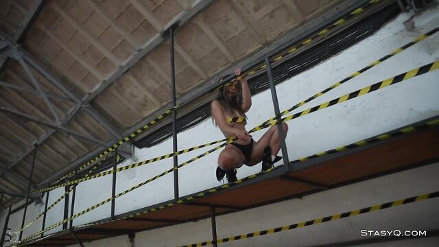 Description:YaraQ continues to serve her feminine charms. This time, the bombastic brunette appears with headphones, glasses, and construction tape over her nipples. She is ready to rock your world and tear your inhibitions down. With her gaze fixed on Said Energizer and his camera, the sultry goddess walks around a construction site. Video Release 594 presents the naughty side of the StasyQ model who can't get enough of your attention. She starts the erotic spectacle by playing with her black panties, which she pulls over her gorgeous hips, only to begin exploring her waist, all the way up to her breasts. Soon enough, she takes her clothes off, leaving nothing on but a pair of boots, and begins dancing around softly, only to show you just how beautiful she is. Her skin is flawless and tanned, and the nipples are hardened with the touch of cool air. YaraQ is ready for you.