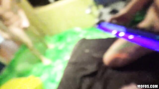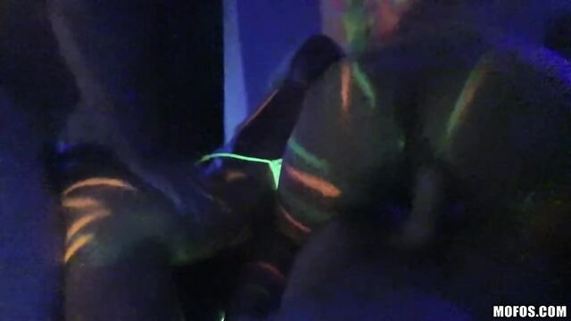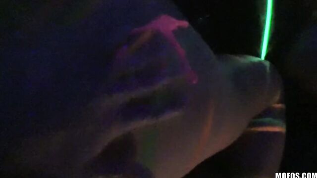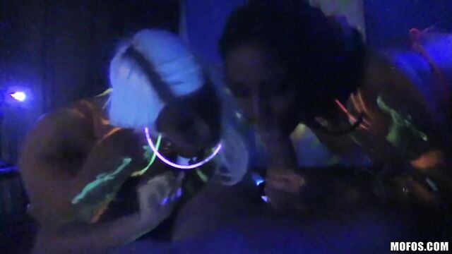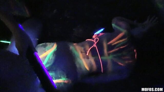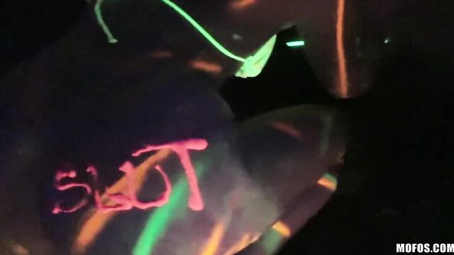 Description:Abbey Lee Brazil and Layla Price were having fun with a blacklight, spreading paint all over their naked bodies, when a couple bros decided to record the action. Those amateur sluts sucked and fucked both their dicks and then took two big facials!